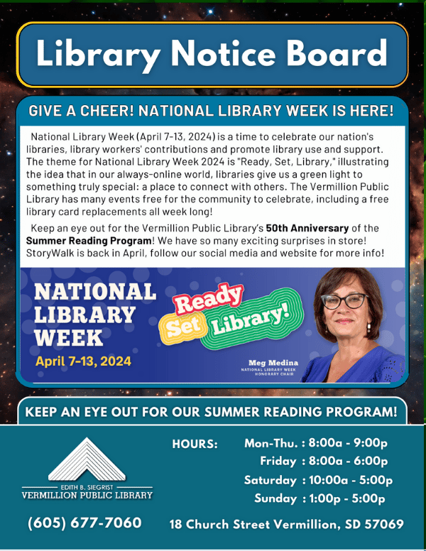 Vermillion Public Library Newsletter: Notice Board April 2024
