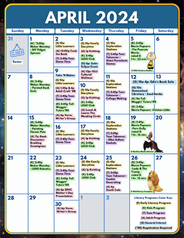 Vermillion Public Library Newsletter: Calendar April 2024