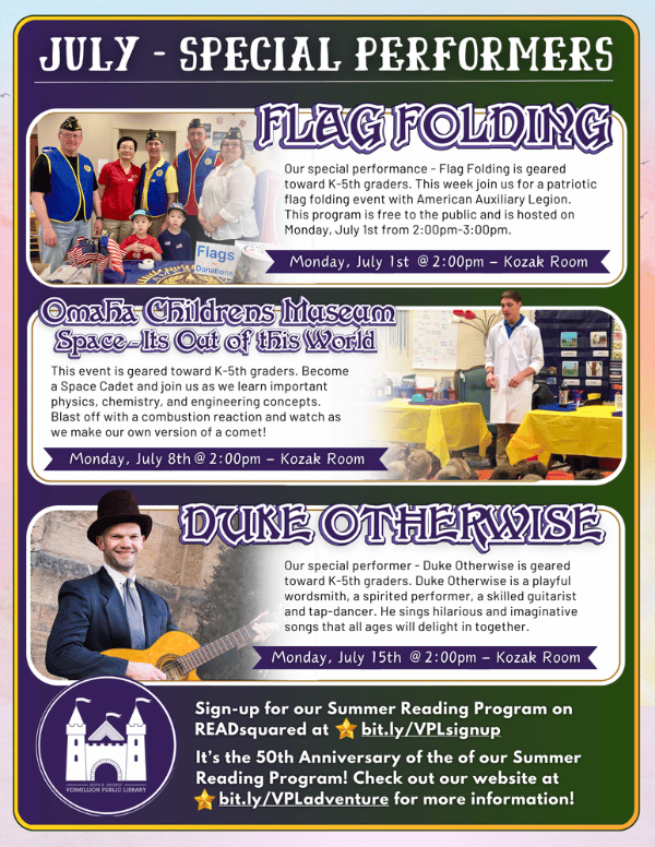 Vermillion Public Library Newsletter: Cover July 2024